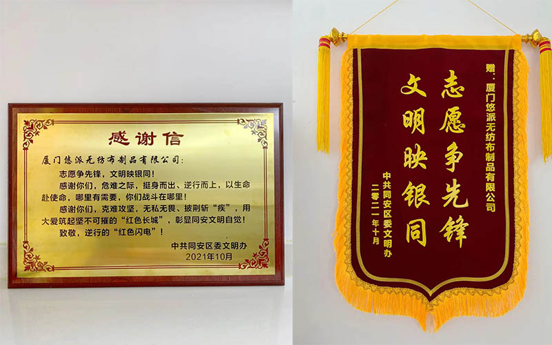 在白衣戰(zhàn)士、志愿者及各路逆行者和全廈門(mén)人民的努力下,于10月初,終戰(zhàn)疫勝利了。廈門(mén)悠派在此次戰(zhàn)疫中盡的微薄之力,也獲得了廈門(mén)同安區(qū)委的肯定。